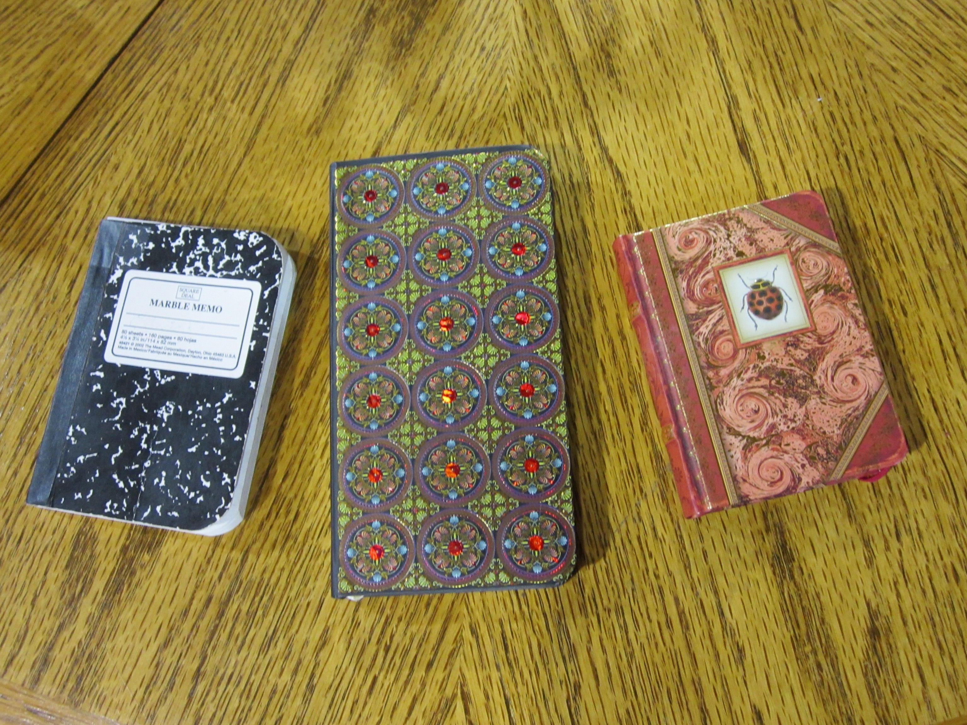 Generally when I write I prefer the broad canvas of an 8 ½ by 11 inch unlined page. You can write, draw, or paste in photos or clippings. But I find the tiny, “mini journals” irresistibly attractive. While my regular journals are inclusive of all aspects of my life, these mini journals each represent a single microcosm.